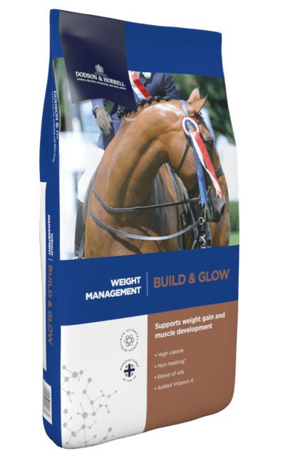 Build & Glow is geformuleerd op zo’n manier dat het een uitstekende bron is van dense en geconcentreerde calorieën. Dit voer is ideaal voor paarden die op wedstrijd of show moeten of paarden die last hebben van gewichtsverlies. De nodige hoeveelheid voer is laag, terwijl de hoeveelheid calorieën zeer hoog is. Dit komt doordat het een mix van olie bevat, die calorieën leveren waarvan het paard niet heet wordt maar wel gewicht aanzet. Het is daarbij gebalanceerd met vitamine E om het vrijkomen van vrije radicalen te bestrijden. Build & Glow is ook hoog in eiwit waardoor de spieren op een uitstekende manier opgebouwd en ondersteund worden.
